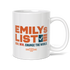 Every day of electing women and defeating Republicans starts with the beverage of your choice in a loud-and-proud EMILYs List logo mug! Microwave and dishwasher-safe ceramic. 11 oz. volume.